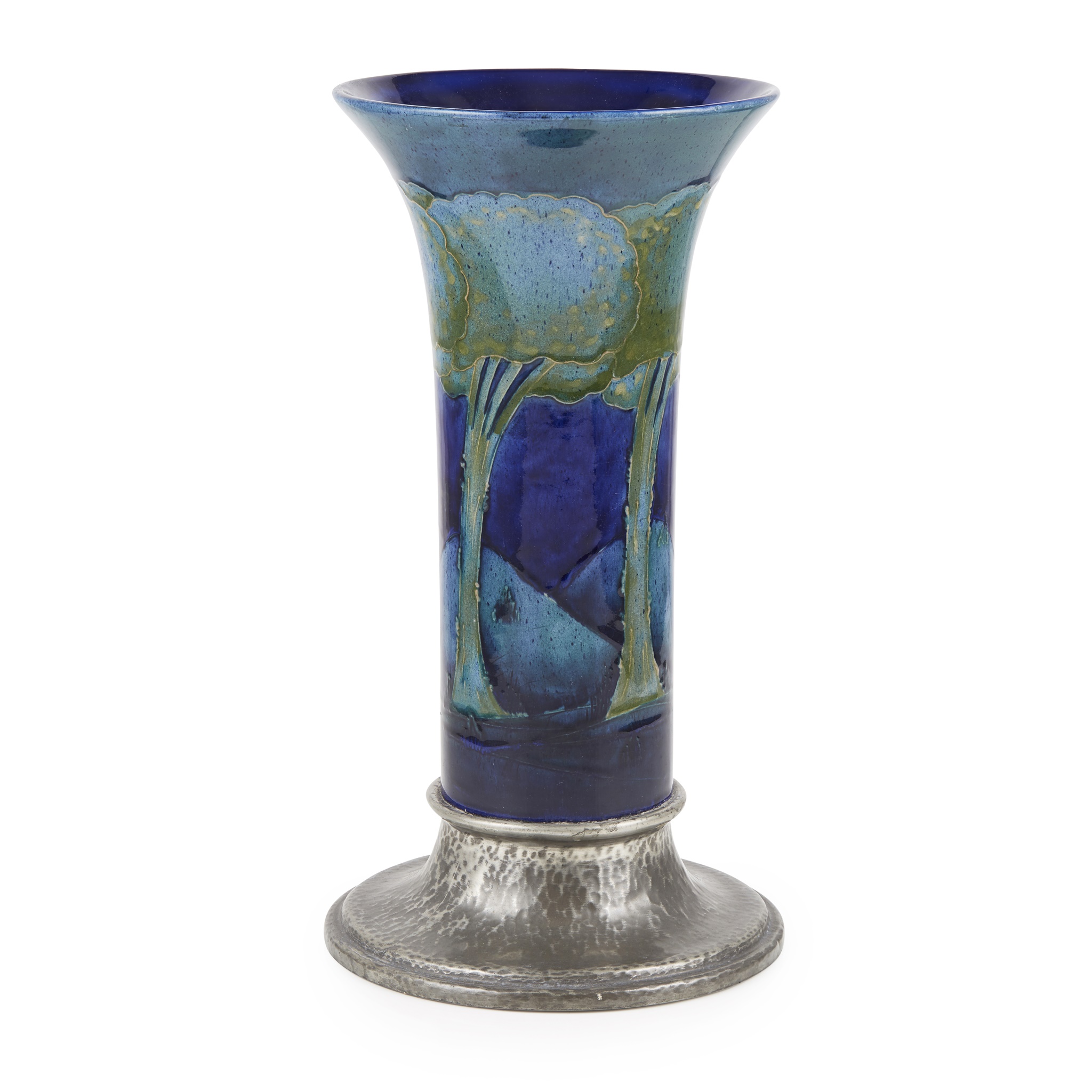 ‘MOONLIT BLUE’ PEWTER MOUNTED VASE, CIRCA 1920