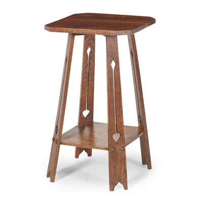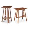 one with rectangular top above pierced support and square tapering legs, 46cm wide, 66.5cm high, 41cm deep; the other with square canted top above pierced tapered supports linked by a lower tier, 40.5cm diameter, 68cm high