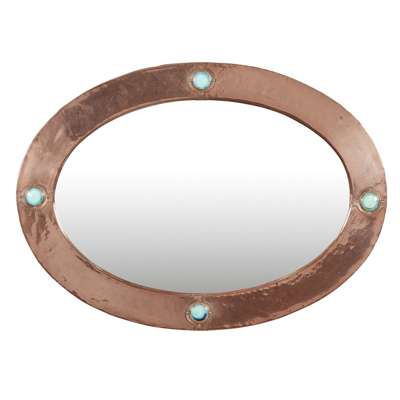 the oval frame with hammered finish set with Ruskin turquoise roundels