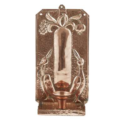 repoussé-decorated with opposed birds on a beaten ground above a single sconce