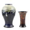 impressed mark, signed in green, 33cm high; and a 'LEAF AND BERRY' TAPERING VASE, covered in a flambé glaze, impressed facsimile mark, signed in blue, 20.5cm high, restored