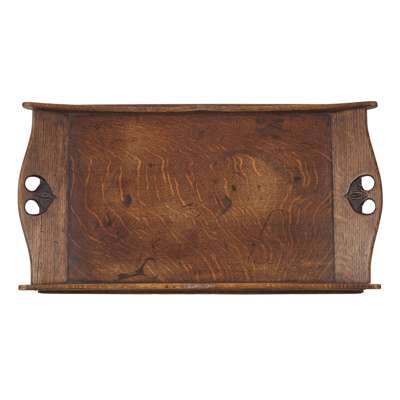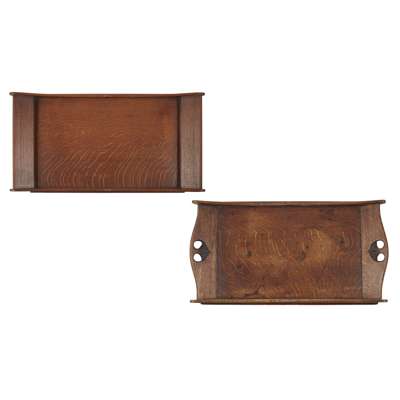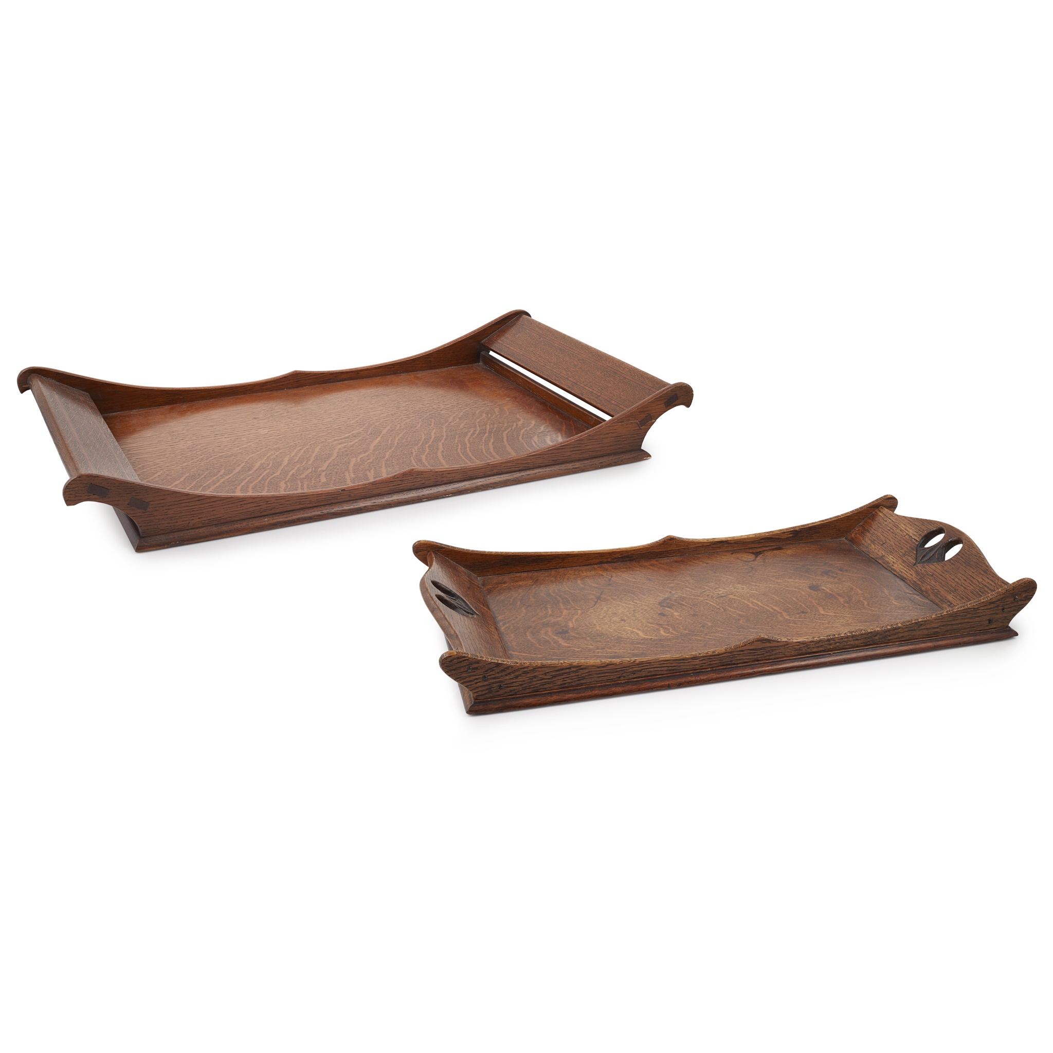 TWO ARTS & CRAFTS OAK SERVING TRAYS, CIRCA 1920