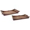 each of galleried rectilinear form, one with pierced handles, 57cm x 30cm; the other with inlaid banding, 66.5cm x 34cm