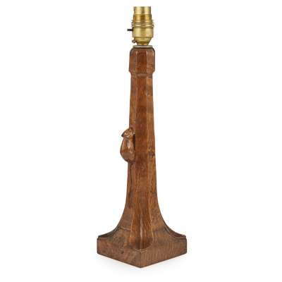 LARGE OAK TABLE LAMP, CIRCA 1935