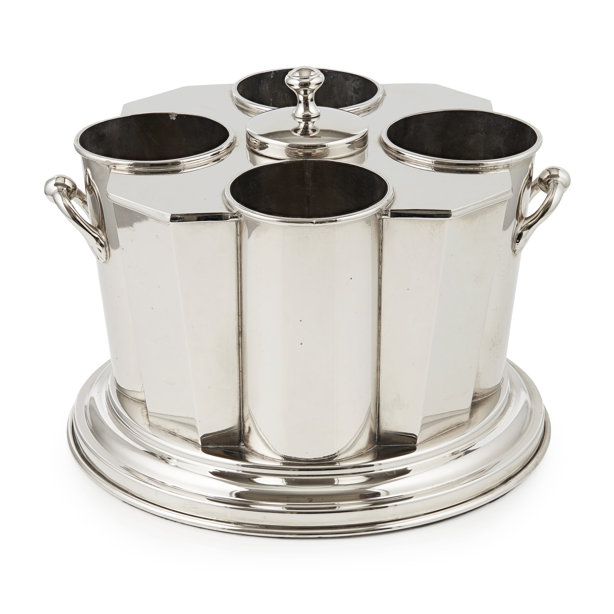 of square canted form with central ice compartment and four bottle receptacles
