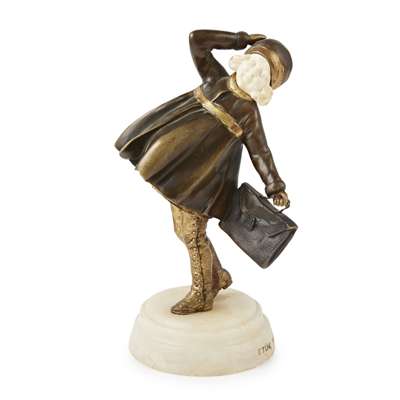 'WINDY DAY' BRONZE AND IVORY FIGURE, CIRCA 1920