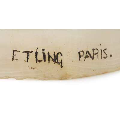with gilded embellishments raised on a white onyx base, founders mark to base ETLING/ PARIS