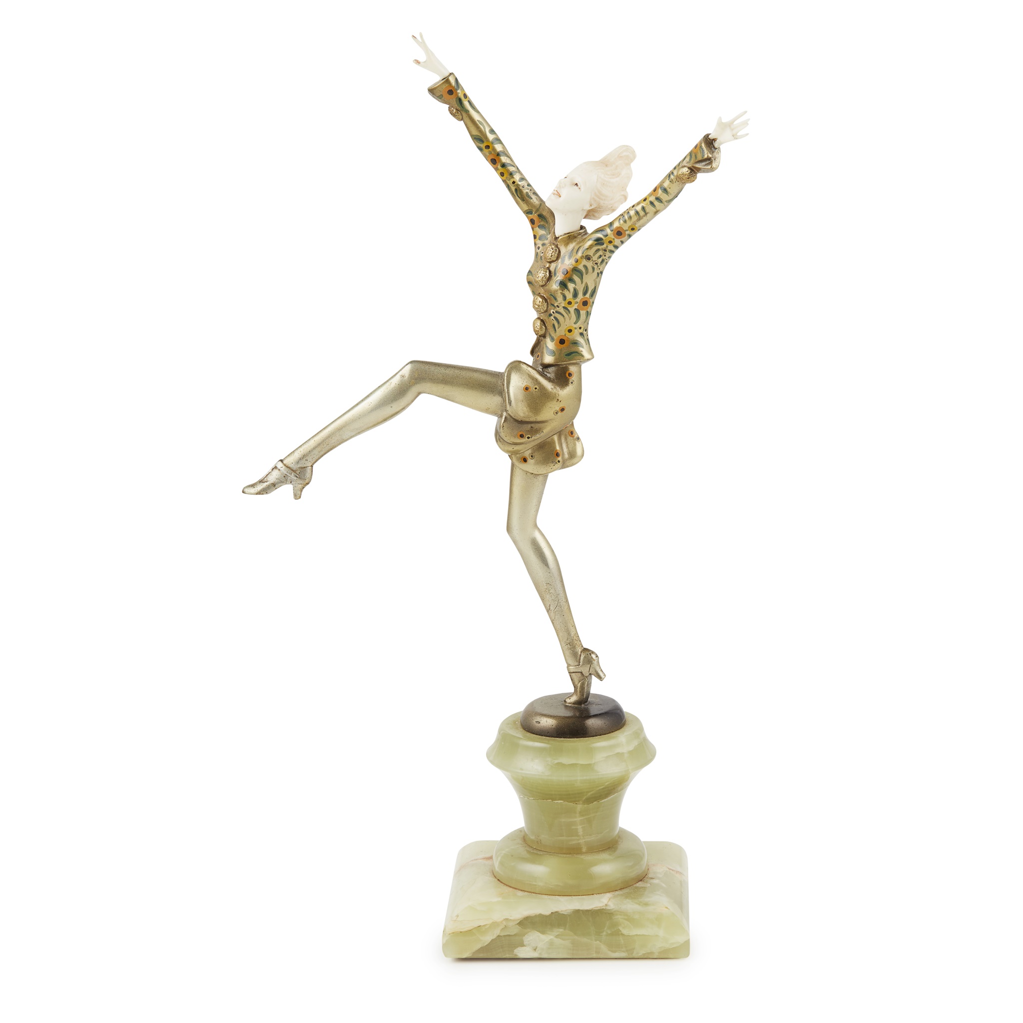 ART DECO BRONZE, IVORY AND ENAMELLED FIGURE, CIRCA 1925