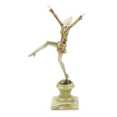 modelled as a dancer, and raised on a turned green onyx base with square plinth