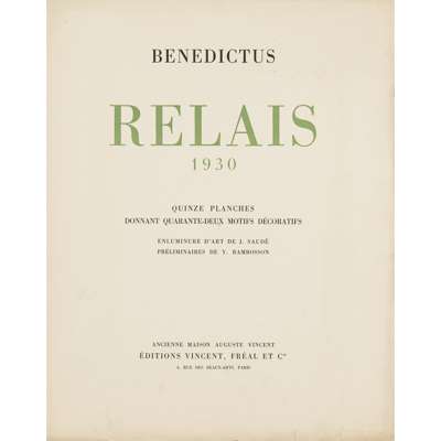 'RELAIS', PARIS: ÉDITIONS VINCENT, FRÉAL & CIE, 1930