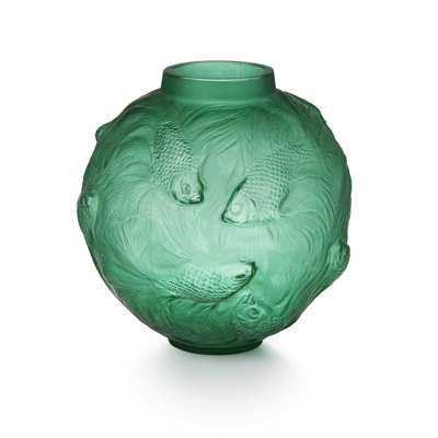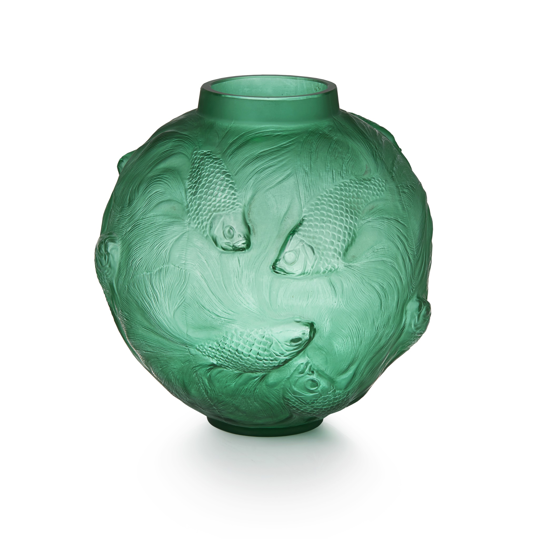of ovoid form, moulded with fish, script etched marks R. LALIQUE/ FRANCE/ No. 934