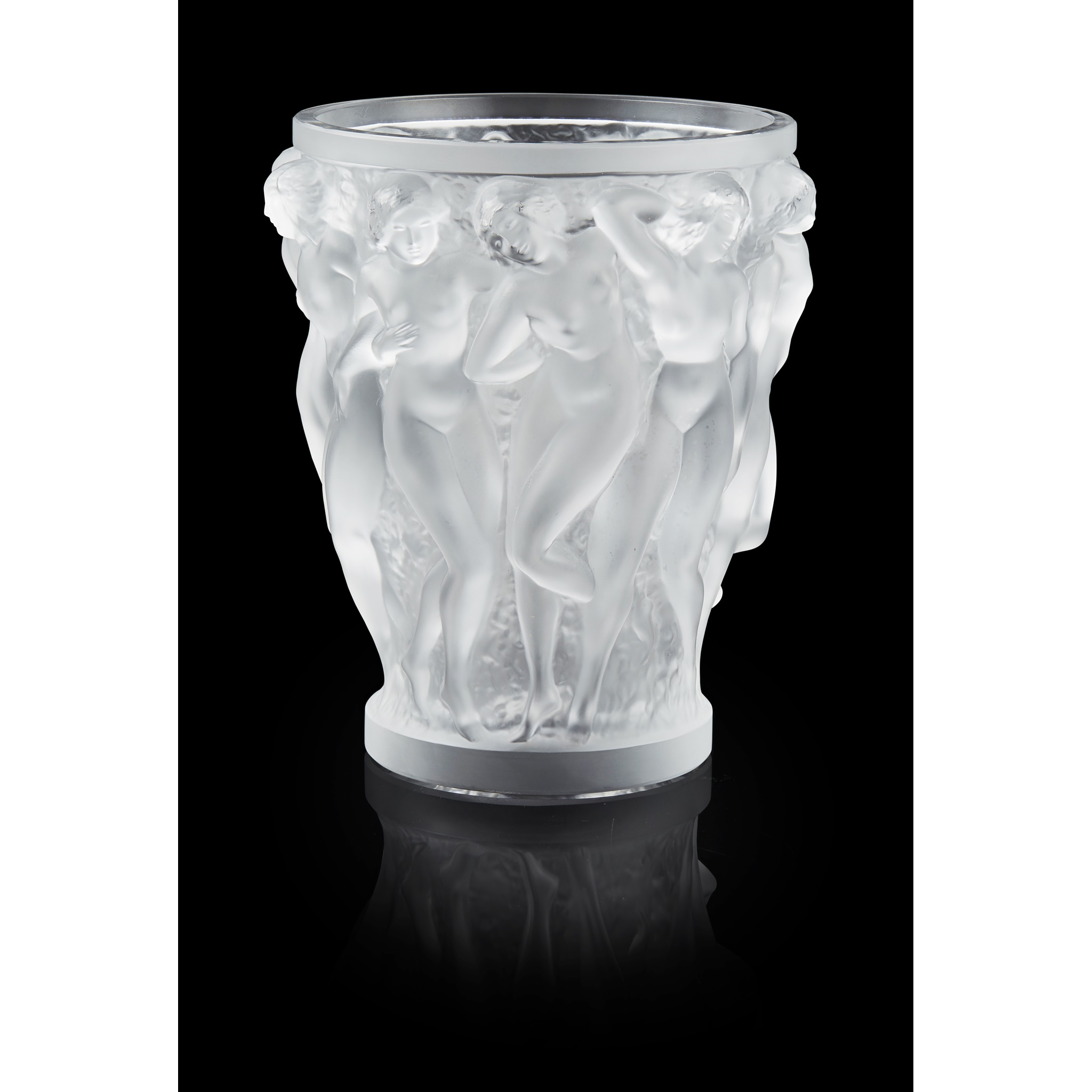 first introduced 1927, moulded with naked female figures, etched maker's mark to foot rim LALIQUE/ FRANCE, with original box