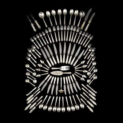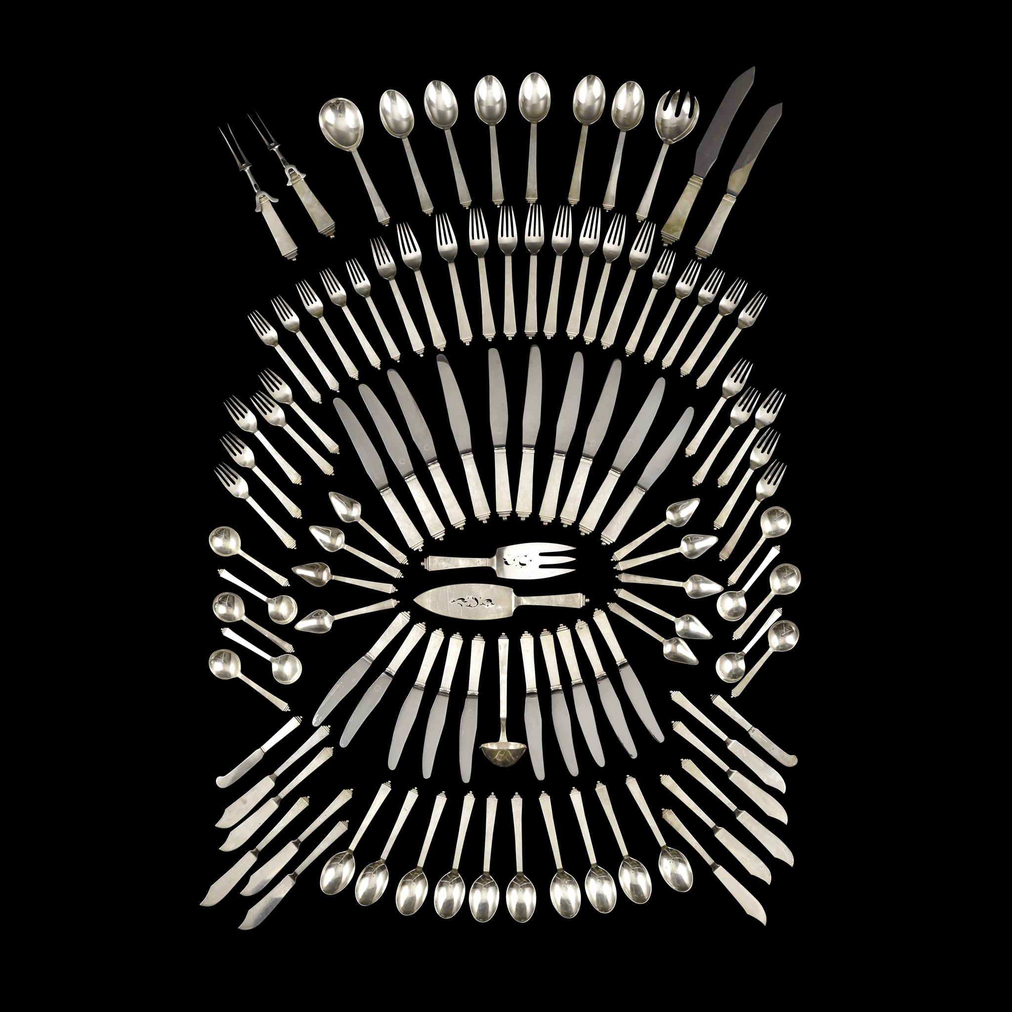 PART CANTEEN OF SILVER 'PYRAMID' PATTERN FLATWARE, 1930s
