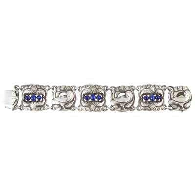 comprising six links in bird and foliate motifs, set with nine oval cabochons, stamped maker's marks GEORG JENSEN/ STERLING/ DENMARK/ 32