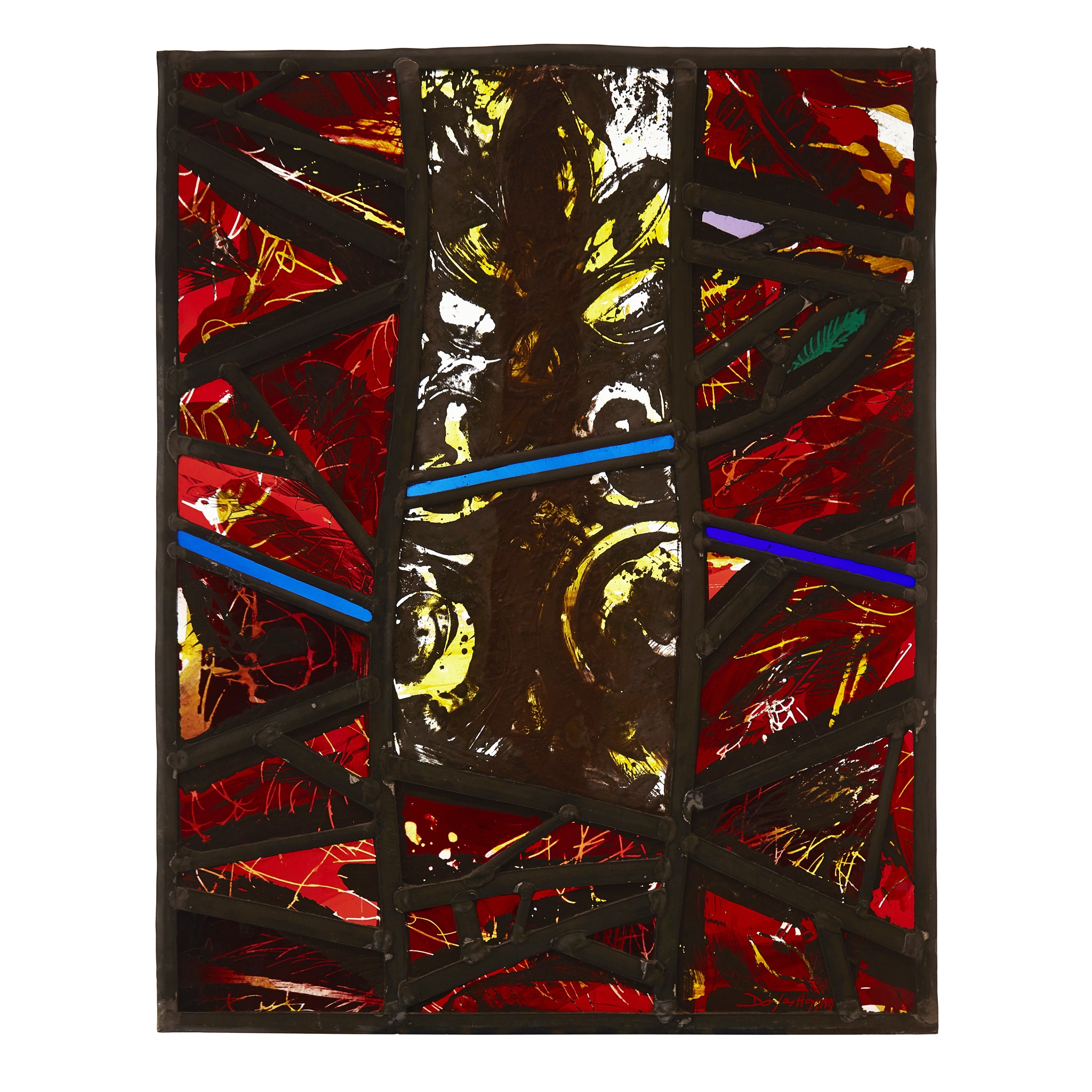 THE THIN BLUE LINE, STAINED AND LEADED GLASS PANEL, 1990