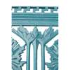 later overpainted in turquoise, the back cast with pierced repeating foliate motifs above downswept open arms enclosing a wooden slatted seat, on tapering legs joined by foliate stretchers, cast maker's marks and date lozenge to back COALBROOKDALE No. 206162