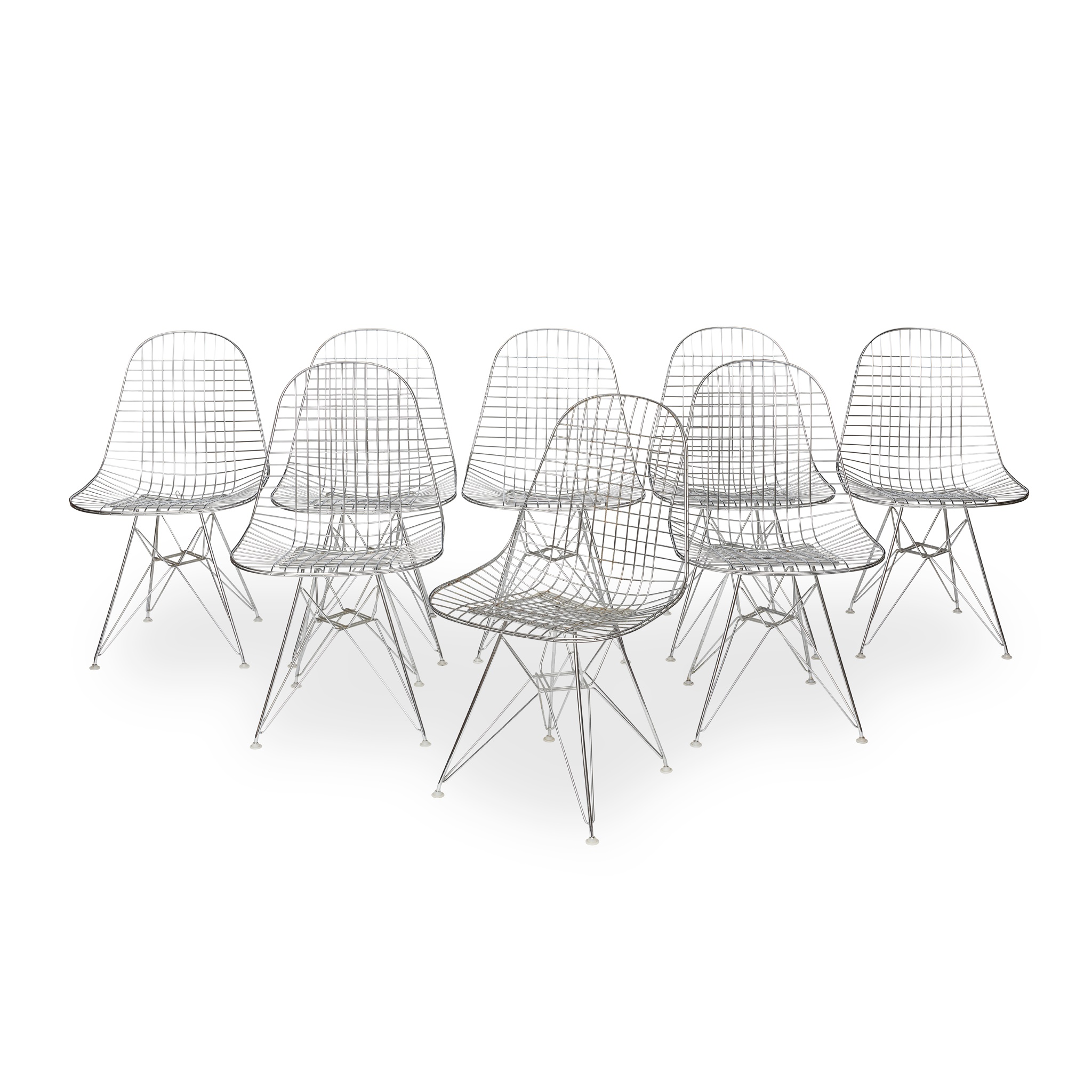 SET OF EIGHT DKR WIRE CHAIRS, DESIGNED 1951