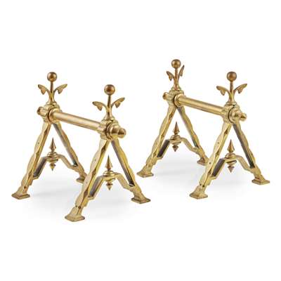 PAIR OF BRASS ANDIRONS, CIRCA 1880