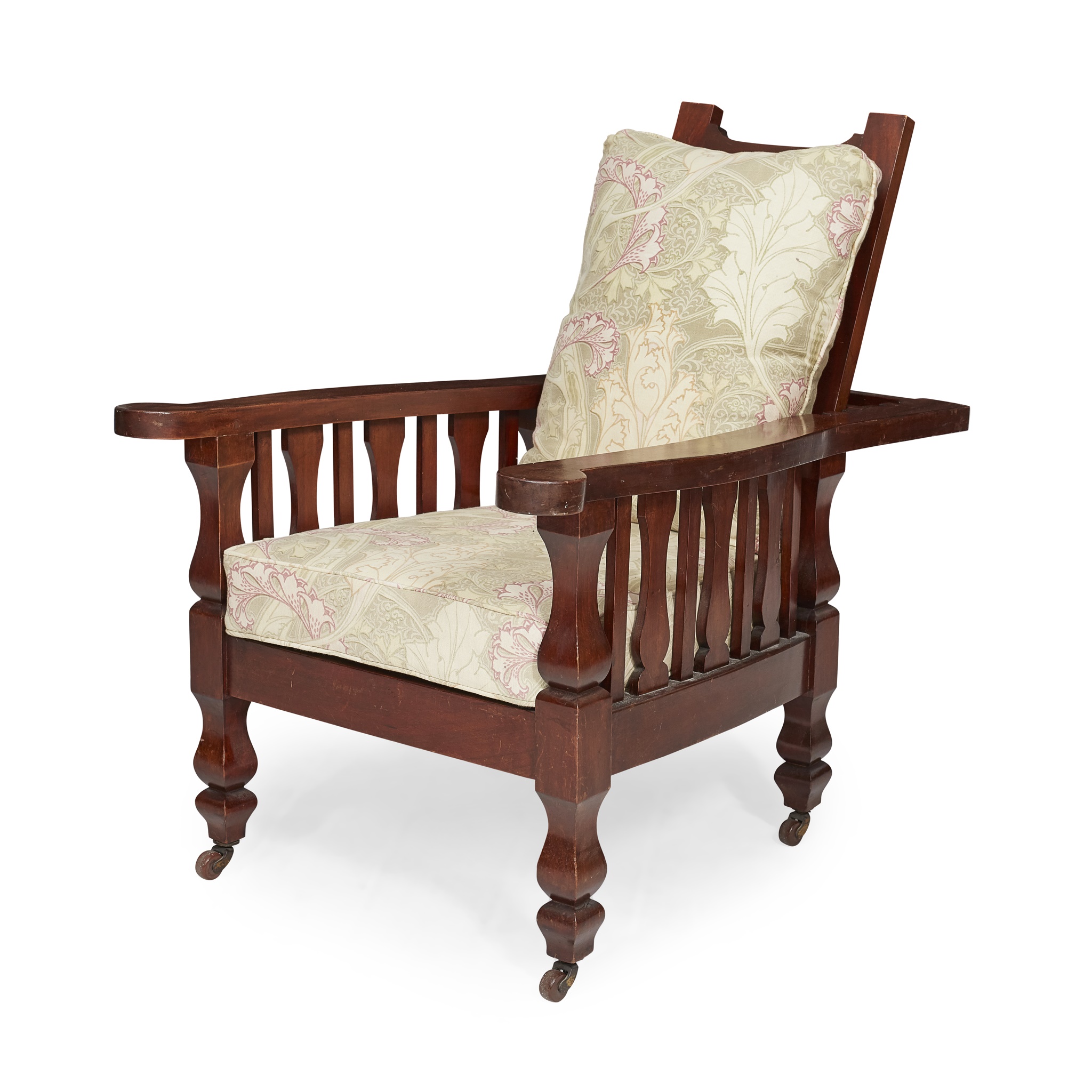 ARTS & CRAFTS MAHOGANY ADJUSTABLE FRAMED ARMCHAIR, CIRCA 1900