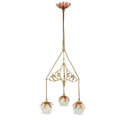 ARTS & CRAFTS BRASS AND COPPER CEILING LIGHT, CIRCA 1900