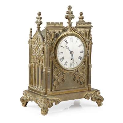 GOTHIC REVIVAL CAST BRASS MANTEL CLOCK, MID-19TH CENTURY