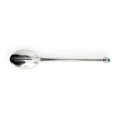 the tapering oval bowl with planished decoration, faceted tapering stem with a chrysoprase finial, stamped maker's marks and hallmarks for London 1901