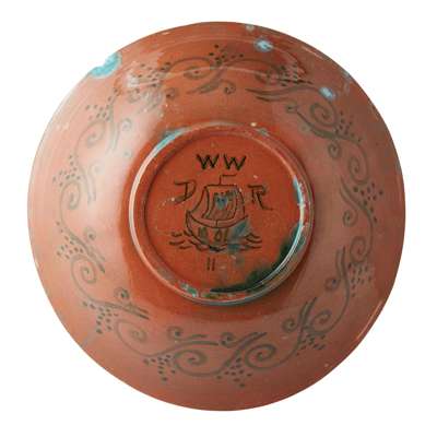 decorated by Willie Williams or William Warwick, with an exuberant foliate design, incised maker’s marks and artist’s marks WW