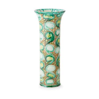 decorated by Liza Wilkins, with bands of stylised scrolling foliage, incised maker’s marks and artist’s marks LW