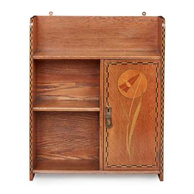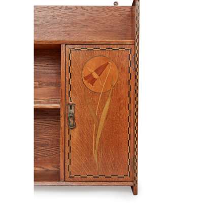 INLAID ARTS & CRAFTS OAK BOOKCASE CABINET, CIRCA 1900