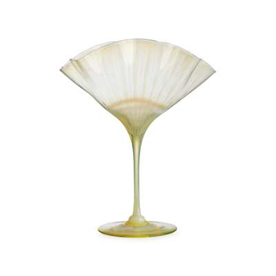 ENGLISH ART NOUVEAU OPALESCENT GLASS FAN-SHAPED VASE, CIRCA 1910