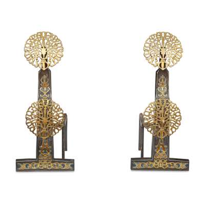 PAIR OF ARTS & CRAFTS BRASS AND STEEL FIRE DOGS, CIRCA 1910