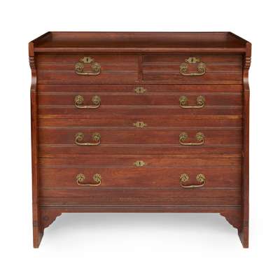 GOTHIC REVIVAL MAHOGANY CHEST OF DRAWERS, CIRCA 1870