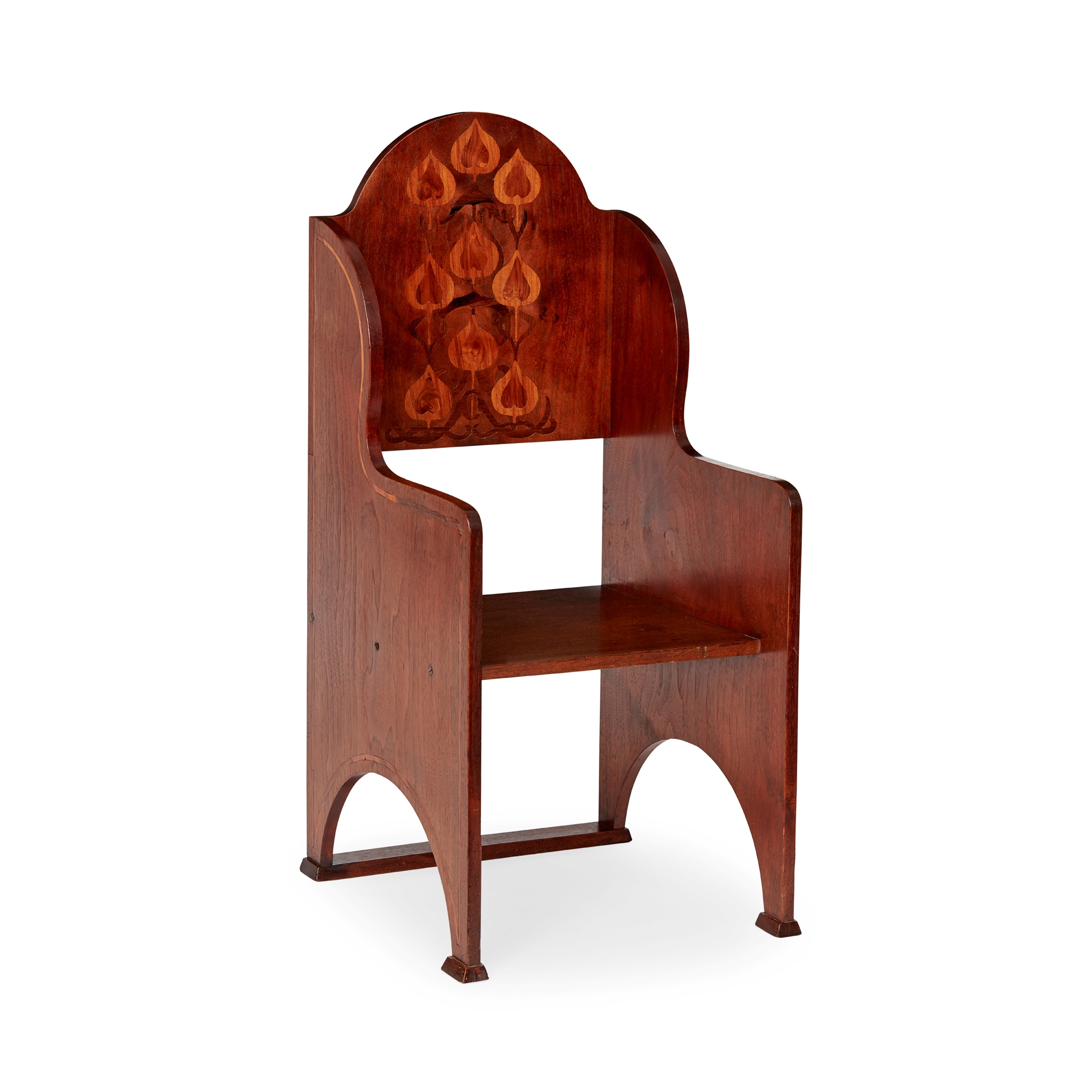ARTS & CRAFTS INLAID FRUITWOOD CHILD'S WING ARMCHAIR, CIRCA 1900