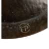 each with hammered finish, the tapered columns with applied riveted heart shaped plaques on domed bases, stamped maker's marks to each FP