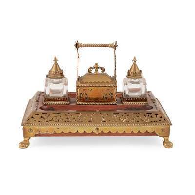 GOTHIC REVIVAL BRASS-MOUNTED OAK DESK STAND, CIRCA 1890