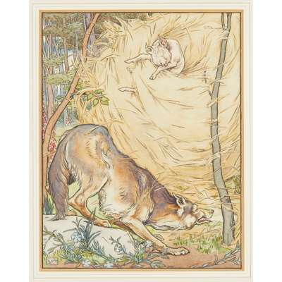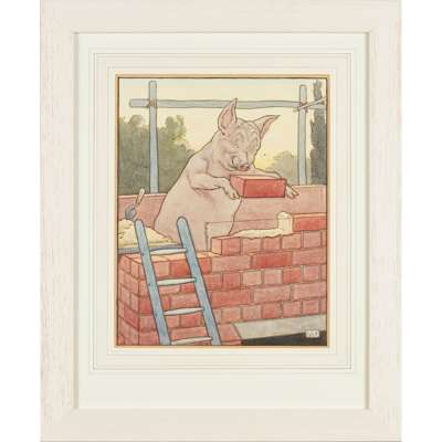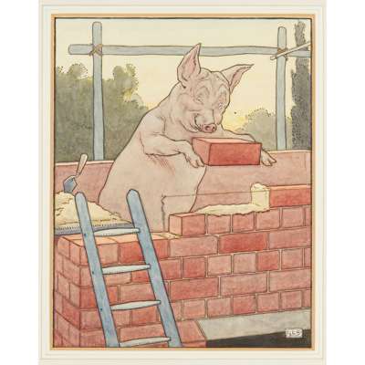 SET OF EIGHT ORIGINAL ILLUSTRATIONS FOR 'THE THREE LITTLE PIGS, CIRCA 1904