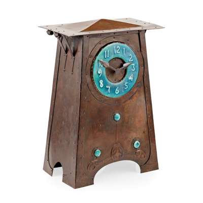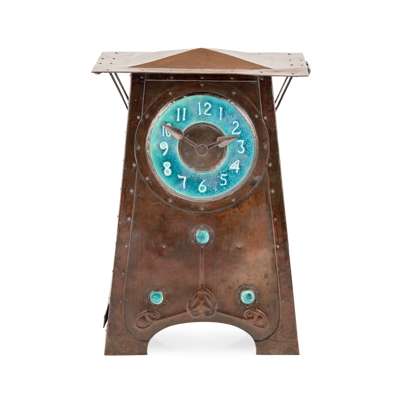 LARGE ARTS & CRAFTS COPPER MANTEL CLOCK, CIRCA 1900