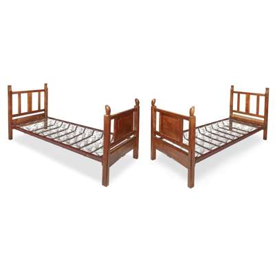 PAIR OF ARTS & CRAFTS CARVED WALNUT SINGLE BEDS, CIRCA 1930