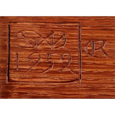 ARTS & CRAFTS OAK STANDARD LAMP BASE, DATED 1952