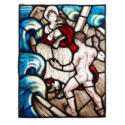STAINED, LEADED AND PAINTED GLASS PANEL, CIRCA 1900