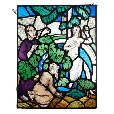 STAINED, LEADED, AND PAINTED GLASS PANEL, CIRCA 1900