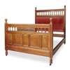 the headboard with spindle gallery and upholstered panel, the footboard with corresponding gallery and panel carved in relief with sunflowers