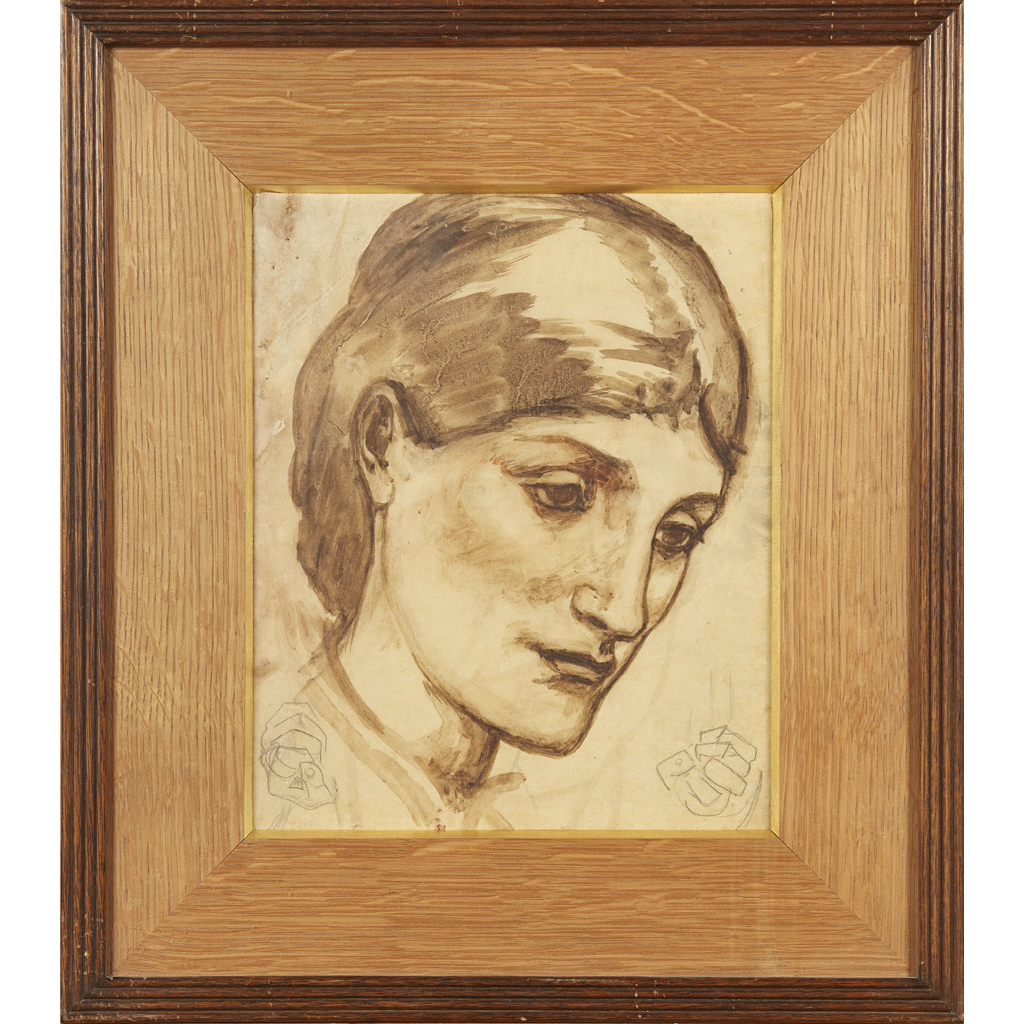 brown wash on tracing paper, framed, 30cm x 24cm; and a STUDY BY THE SAME HAND OF ETHELDRED EMILY ADAMS R.I.P. pencil, inscribed and dated September 29th 1897, framed, 26cm x 37cm