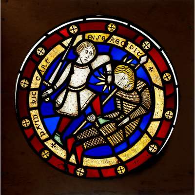 each in the French 13th century style, both depicting scenes with David and Goliath, inscribed to the perimeter