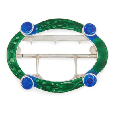 ARTS & CRAFTS SILVER & ENAMEL BELT BUCKLE, LONDON 1910