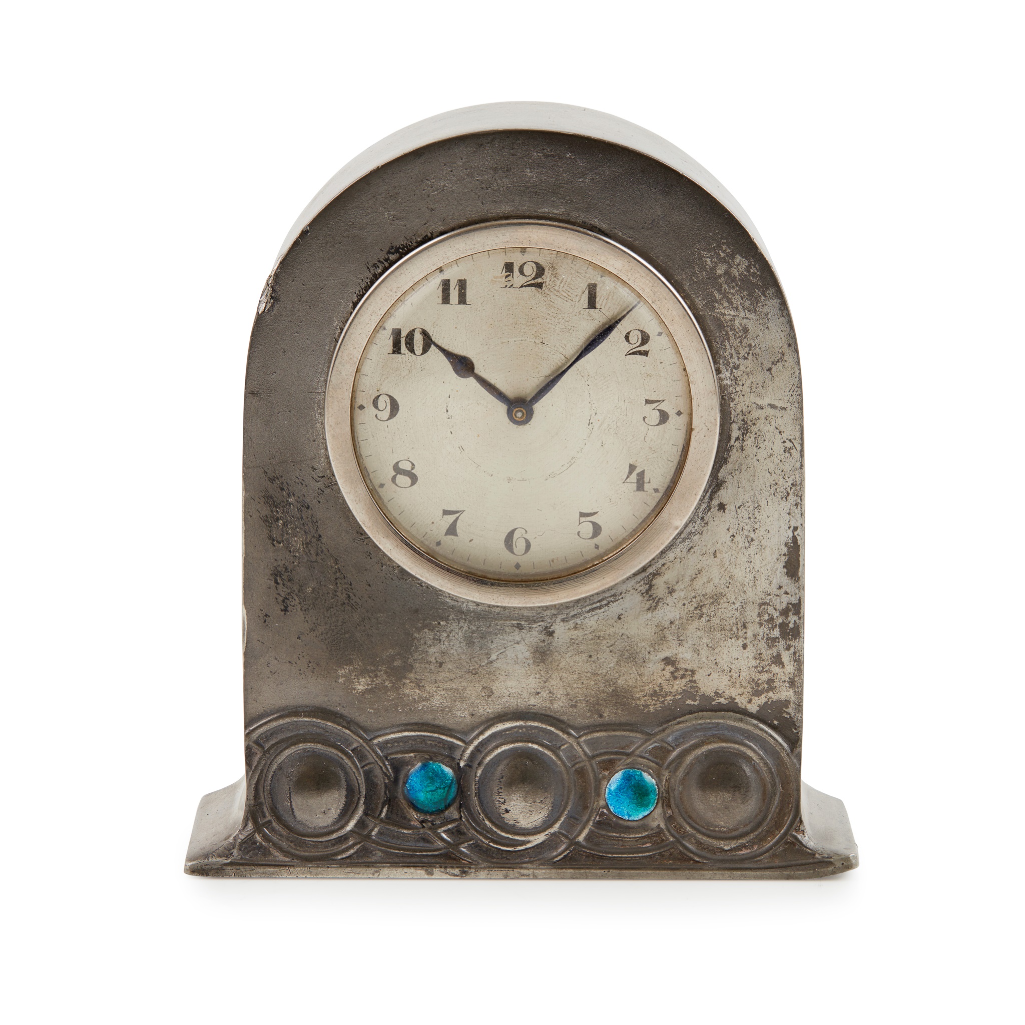 'TUDRIC' PEWTER AND ENAMEL CLOCK, CIRCA 1900