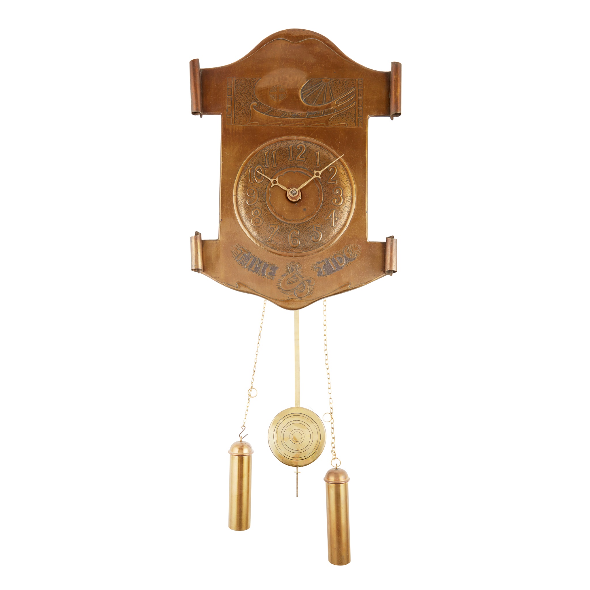 ARTS & CRAFTS BRASS WALL CLOCK, CIRCA 1900