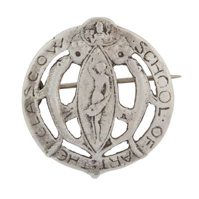 the pierced circular badge featuring the School coat of arms and inscribed THE GLASGOW SCHOOL OF ART