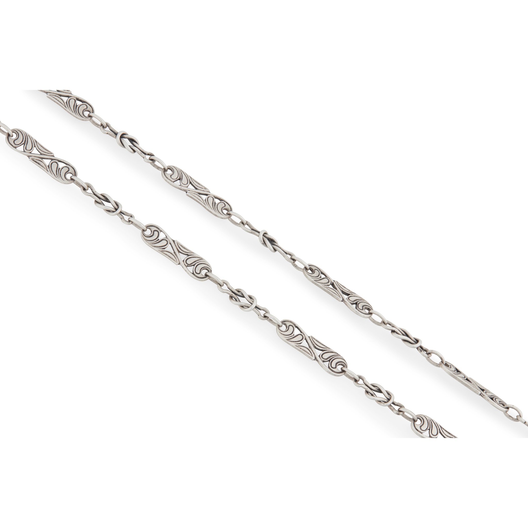 WHITE METAL PENDANT CHAIN, CIRCA 1920