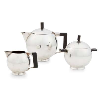 THREE-PIECE WHITE METAL TEA SERVICE, CIRCA 1925